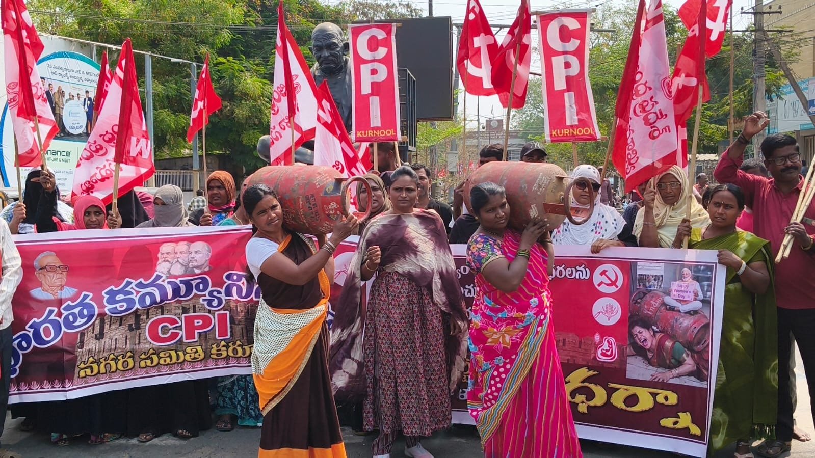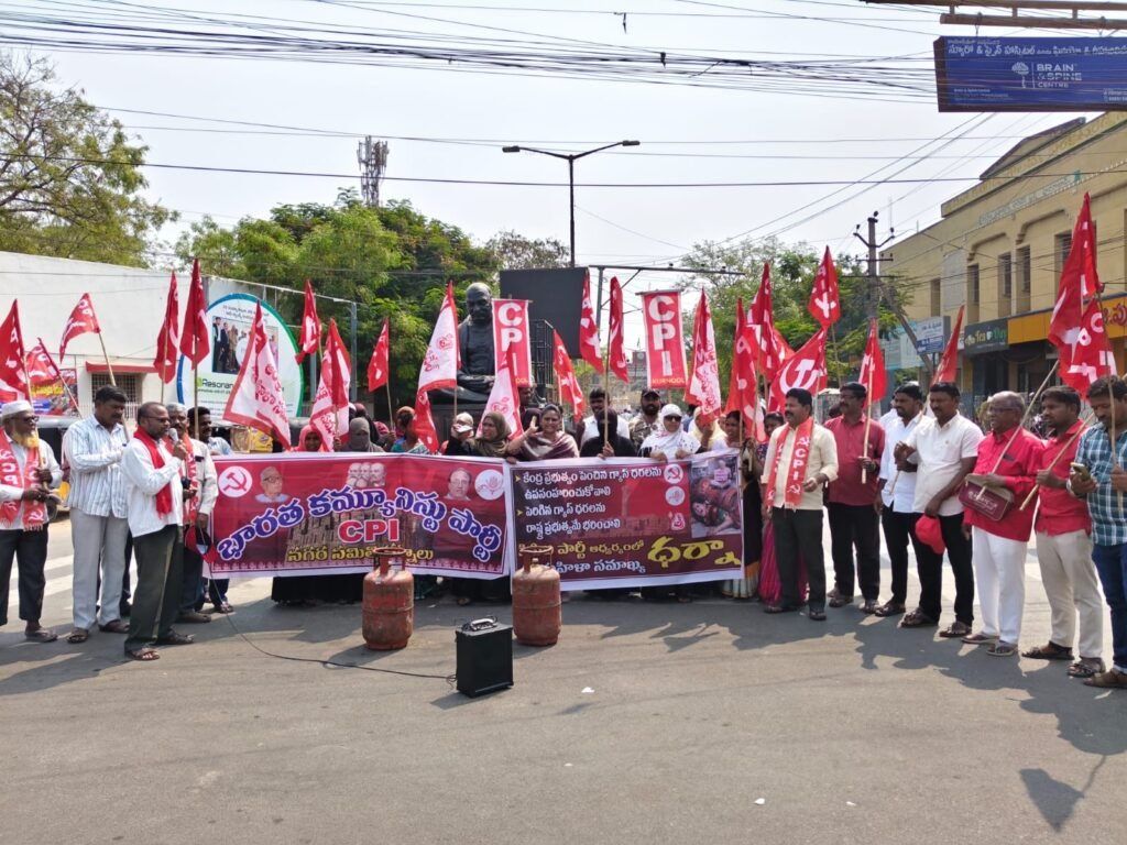 భారత కమ్యూనిస్టు పార్టీ (సిపిఐ) ఏపీ మహిళా సమాఖ్య నగర సమితి ల ఆధ్వర్యంలో మంగళవారం కలెక్టర్ ఆఫీస్ ముందు పెంచిన గ్యాస్ ధరలు తగ్గించాలని ధర్నా చేపట్టడం జరిగిందన్నారు.ఈ ధర్నా కార్యక్రమానికి అధ్యక్షులుగా మహేష్ అధ్యక్షత వహించగా ముఖ్య అతిథులుగా హాజరైన సిపిఐ నగర కార్యదర్శి పి రామకృష్ణారెడ్డి, అఖిల భారత యువజన సమాఖ్య జిల్లా కార్యదర్శి శ్రీనివాసులు, మహిళా సమైక్య నగర కార్యదర్శి భారతి ముఖ్య అతిథిగా హాజరై మాట్లాడుతూ మధ్యతరగతి ప్రజలు వాడుతున్న 14 కేజీల సిలిండర్ పైన 60 రూపాయలు హోటల్స్ వ్యాపారస్తులు వాడే కమర్షియల్ గ్యాస్ సిలిండర్ పైన 160 రూపాయలు పెంచడం చాలా దుర్మార్గమని తక్షణమే పెంచిన గ్యాస్ ధరలు తగ్గించాలని లేదా పెరిగిన గ్యాస్ ధరలను రాష్ట్ర ప్రభుత్వమే భరించాలని వారి సందర్భంగా రాష్ట్ర ప్రభుత్వాన్ని డిమాండ్ చేశారు. నరేంద్ర మోడీ ఉదయం లేచినప్పటి నుండి నా హిందువులు నా బంధువులు అనే నరేంద్ర మోడీ మధ్యతరగతి హిందువులు వాడే 14 కేజీల సిలిండర్ పై 60 రూపాయలు పెంచి హిందువుల నడ్డి విరిచాడు.ఇండియాకు అతి తక్కువ ధరకే రష్యా నుండి ఆయిల్ దిగుమతి అవుతుంటే ఆయిలను రద్దు చేయించిన అమెరికా అధ్యక్షుడు అమెరికా వాడు చెప్పిన చోట ఆయిల్ కొనుగోలు చేయాలన్నారు.